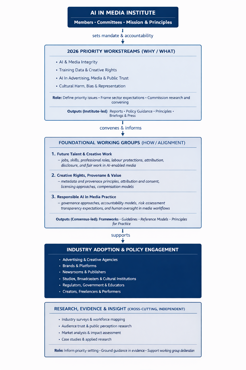 The AI in Media Institute exists to provide structure where fragmentation exists, evidence where assumption dominates, and alignment where practice is diverging.